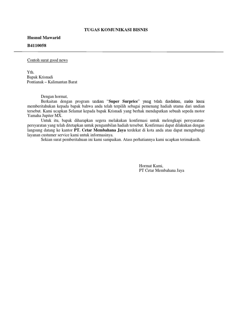 Contoh Surat Bisnis Word Contoh Surat Bisnis Word Involve Some
