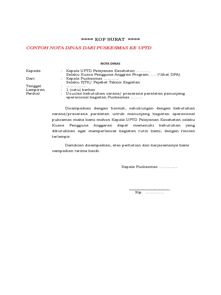 Contoh surat nota dinas. Sebelum ke topik pembahasan untuk sekedar pengetahuan setidaknya kita mengetahui arti dari nota dinas ini. Contoh surat resmi yang baik dan benar. Contoh nota dinas pada instansi pemerintahan untuk perjalanan dinas dan narasumber contoh nota dinas merupakan hal penting yang harus anda ketahui karena nota dinas ini berfungsi untuk menyampaikan informasi secara formal antara pihak satu ke pihak lainnya dalam instansi pemerintahan atau swasta.