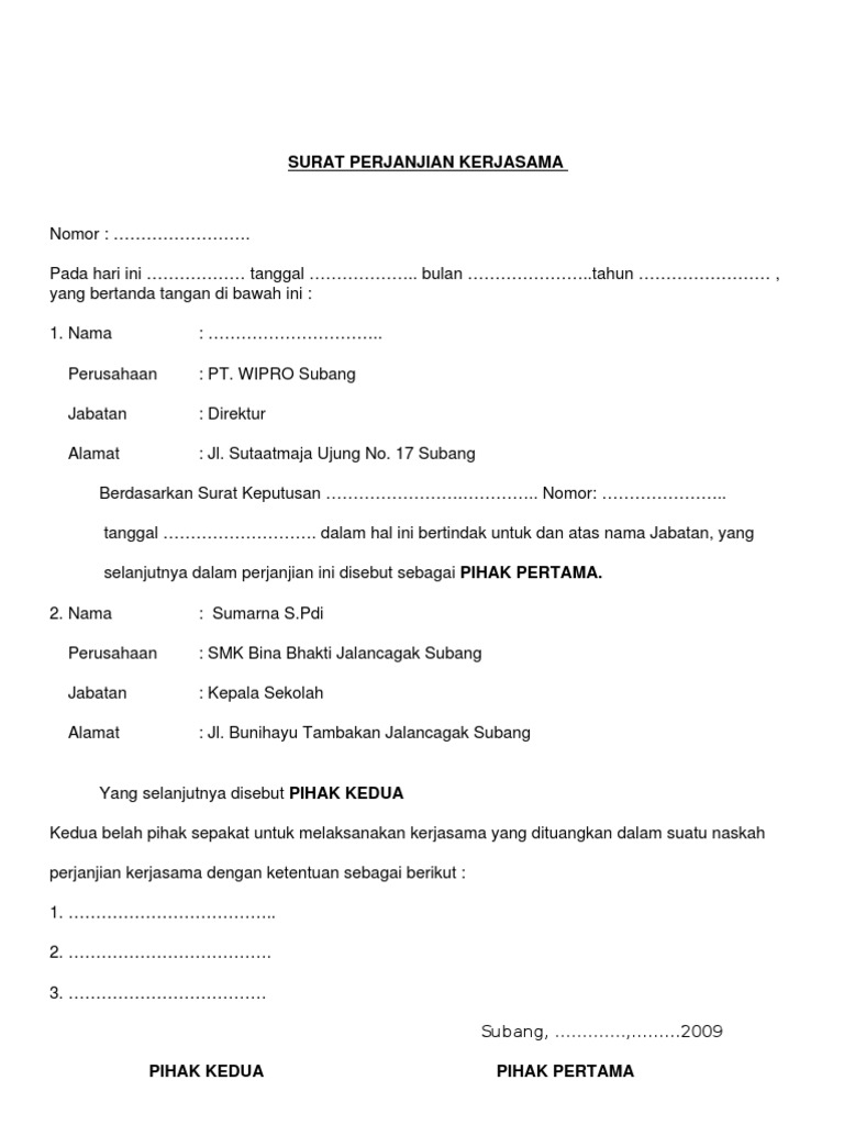 Contoh Surat Perjanjian Kerja Sama Yang Benar