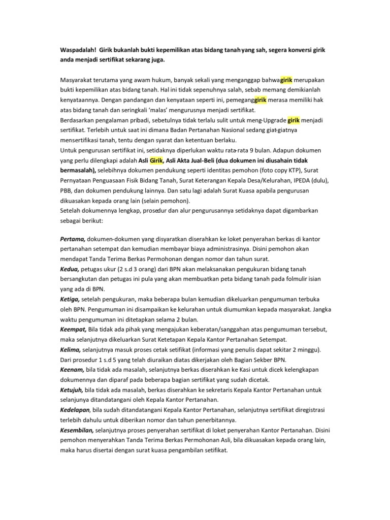 Merubah Tanah Girik Ke Sertifikat Yukbisnisproperti Org