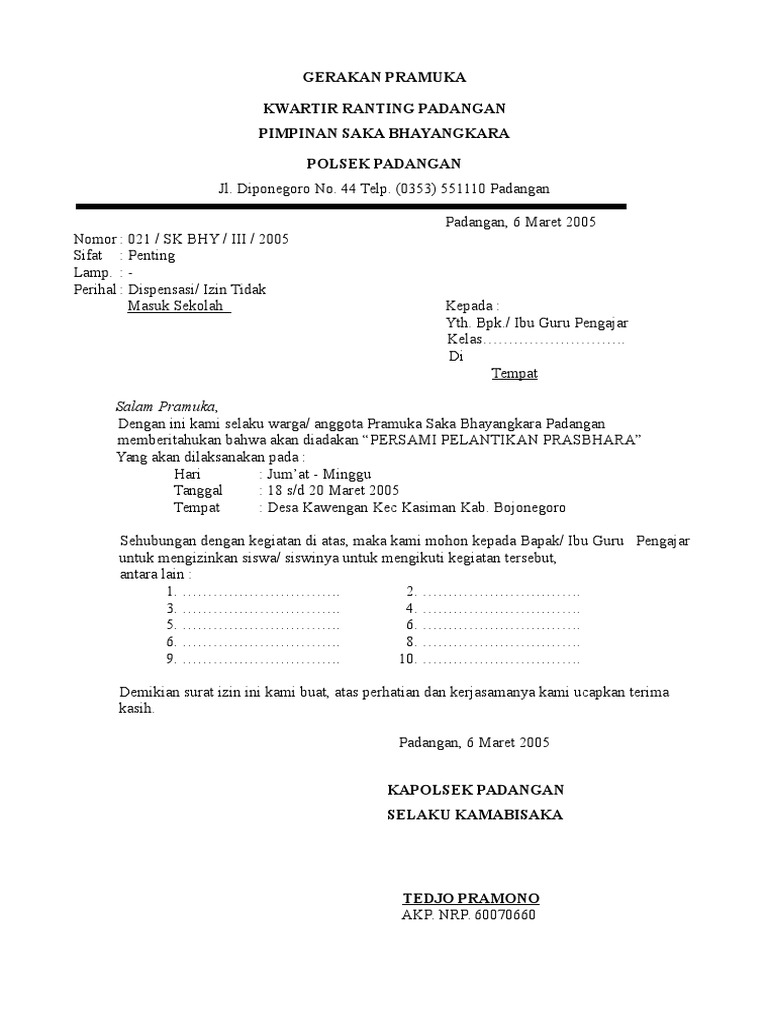 Contoh Surat Dispensasi Informasi Seputar Dunia Militer Dan Intelijen