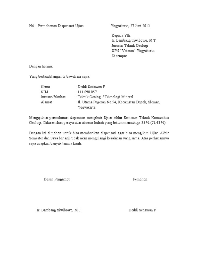 Contoh Surat Permohonan Dispensasi Yang Resmi Baik Dan Benar Format