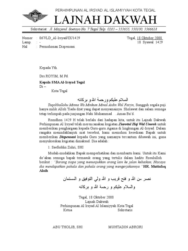 Contoh Surat Dispensasi Organisasi Suratsurat Xyz