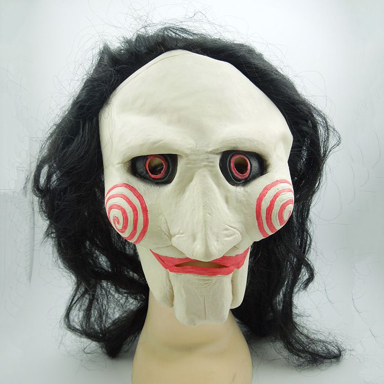 Movie Saw Chainsaw Massacre Jigsaw Puppet Latex Mask With Long And Short Wigs Creepy Scary Cosplay Masks Halloween Party Props